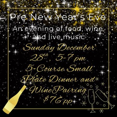 Toast the upcoming New Year with an exclusive prix fixe five-course small plate dinner, complemented by expertly selected wine pairings and a distinguished violin and cello performance.